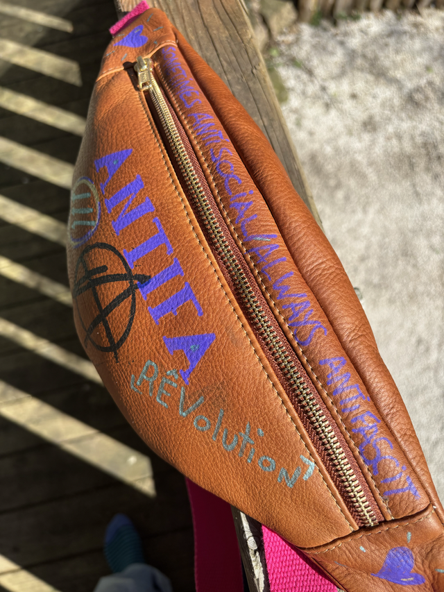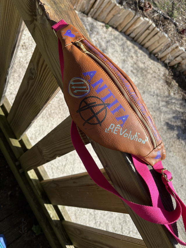 100% cuir de bovin, déco en POSCA et VersaFine.